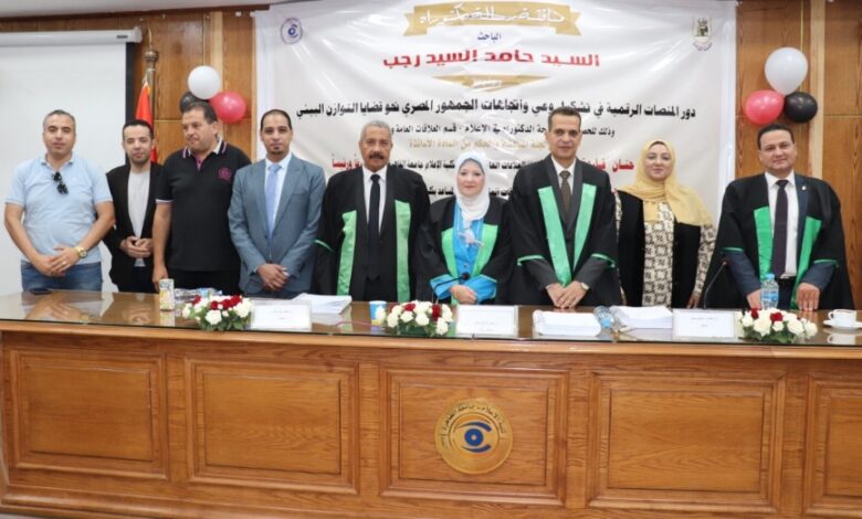 حصل الزميل السيد حامد السيد رجب على درجة الدكتوراة في الإعلام من كلية الإعلام بجامعة القاهرة بتقدير امتياز مع مرتبة الشرف الأولى، عن أطروحته العلمية التي تناولت موضوعًا حيويًا تحت عنوان: “دور المنصات الرقمية في تشكيل وعي واتجاهات الجمهور المصري نحو قضايا التوازن البيئي”.
